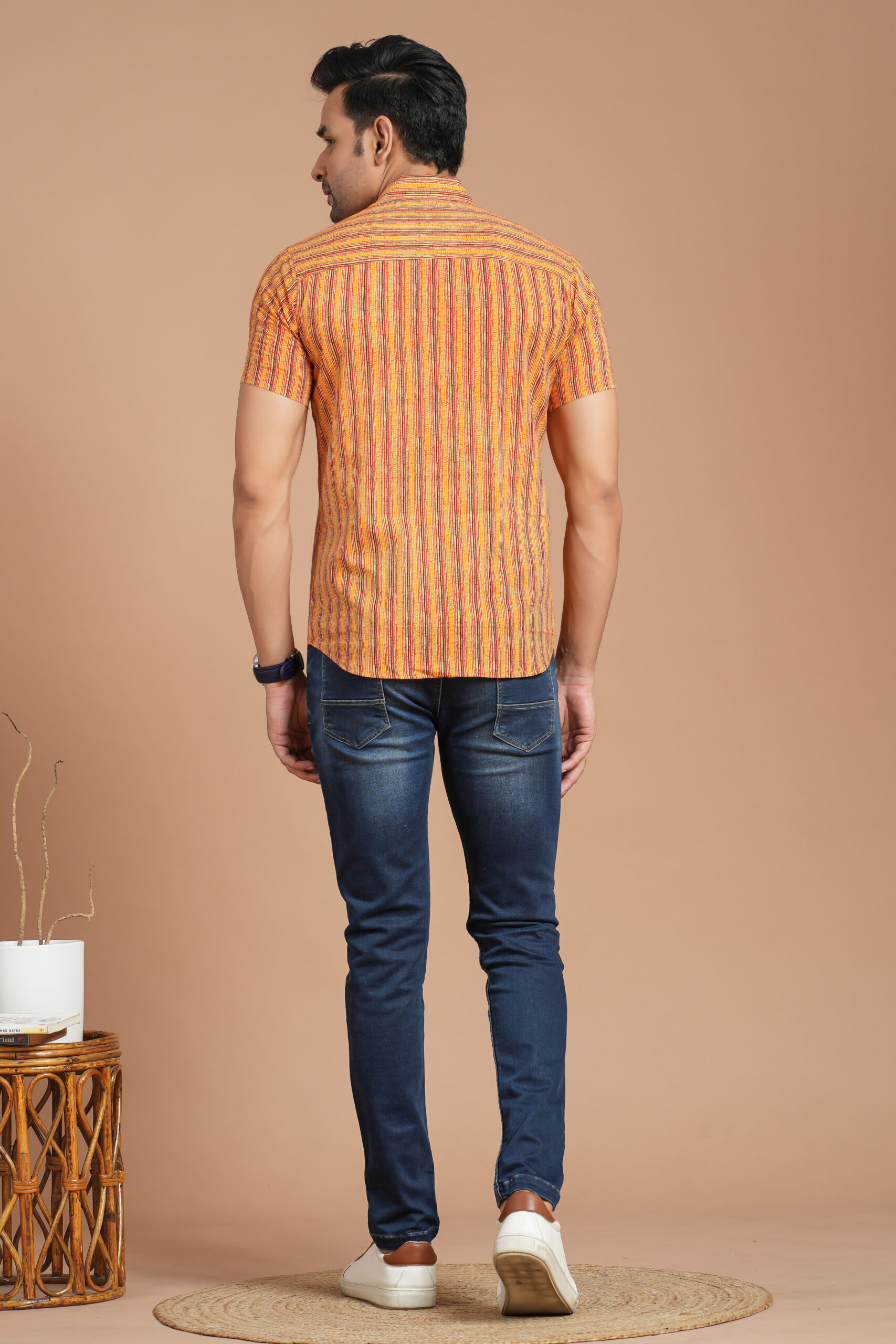 Be the first to review “Men’s Bright Orange Striped Printed Cotton Short-Sleeve Shirt – Casual Summer Wear”
