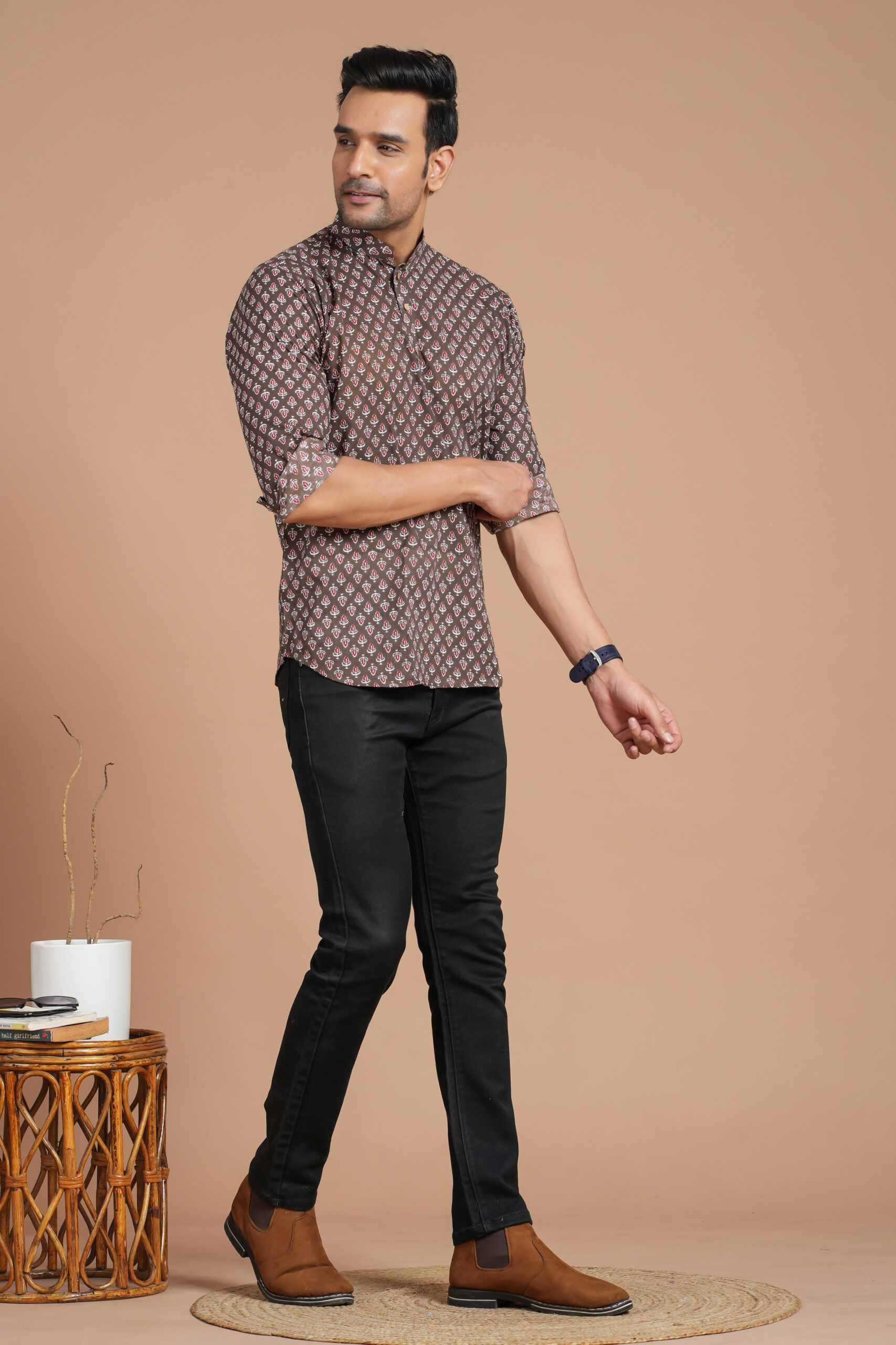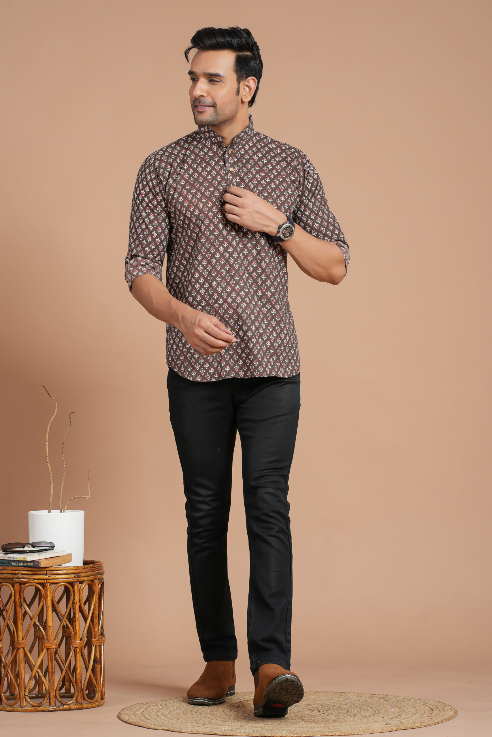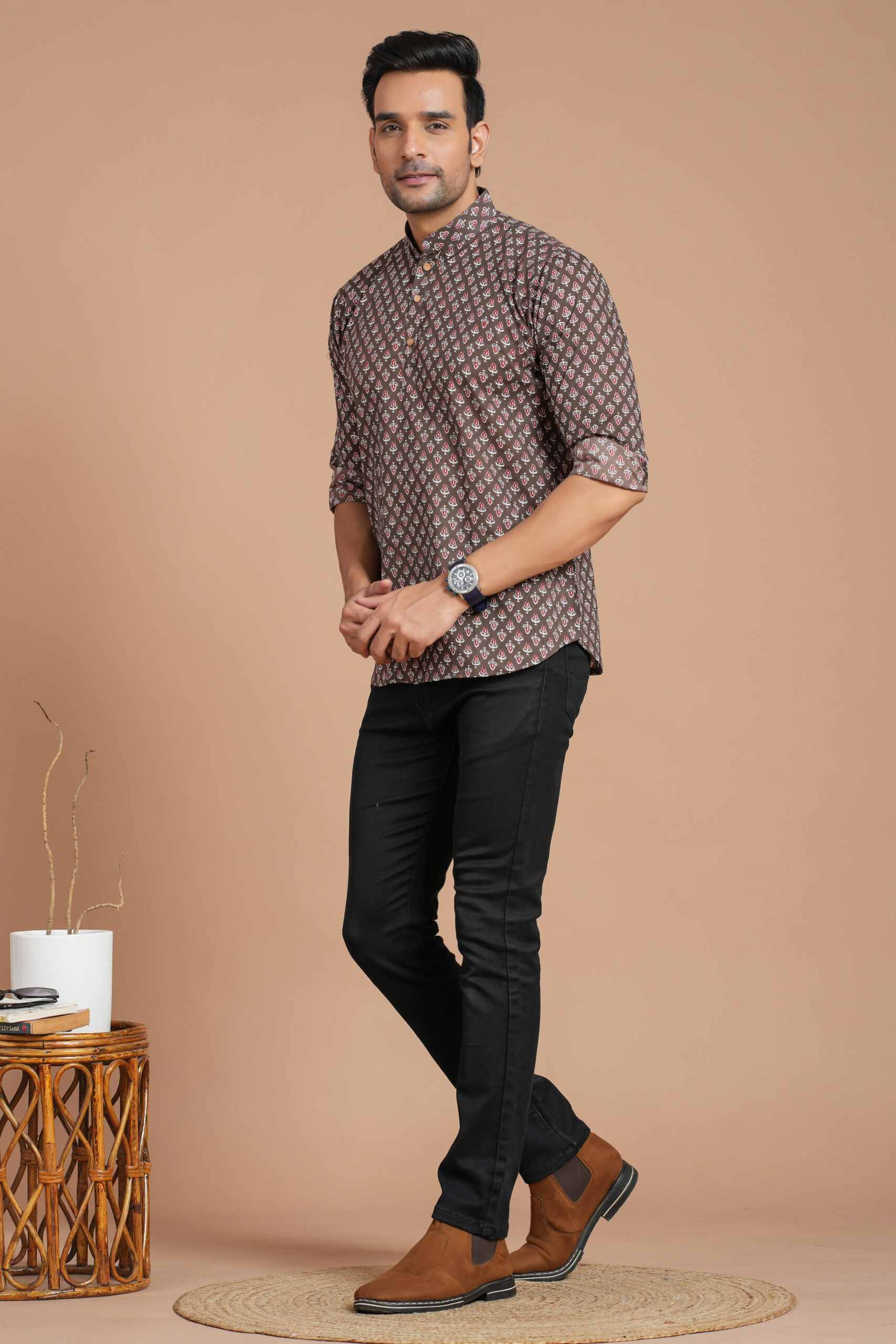 Men's Cotton Brown Printed Kurta – Casual & Festive Daily Wear