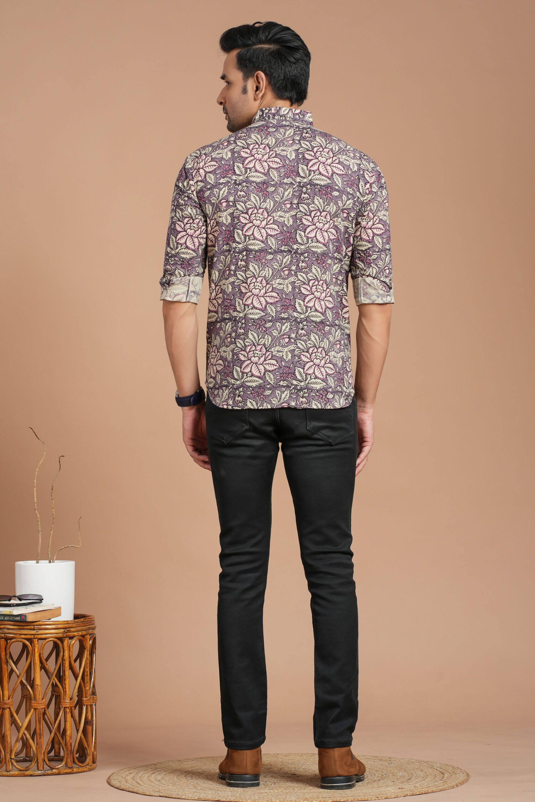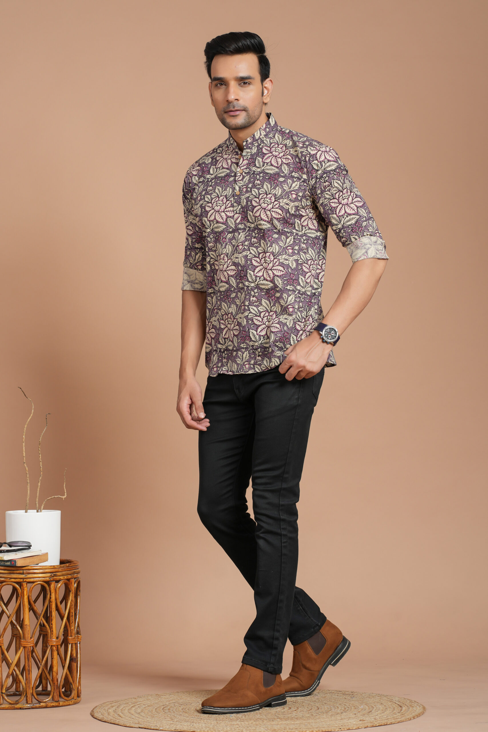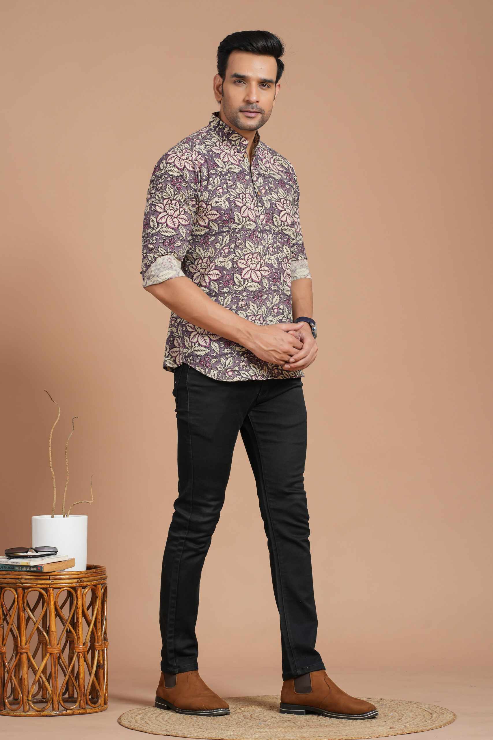 Men's Cotton Purple Floral Printed Kurta Β– Casual & Festive Daily Wear