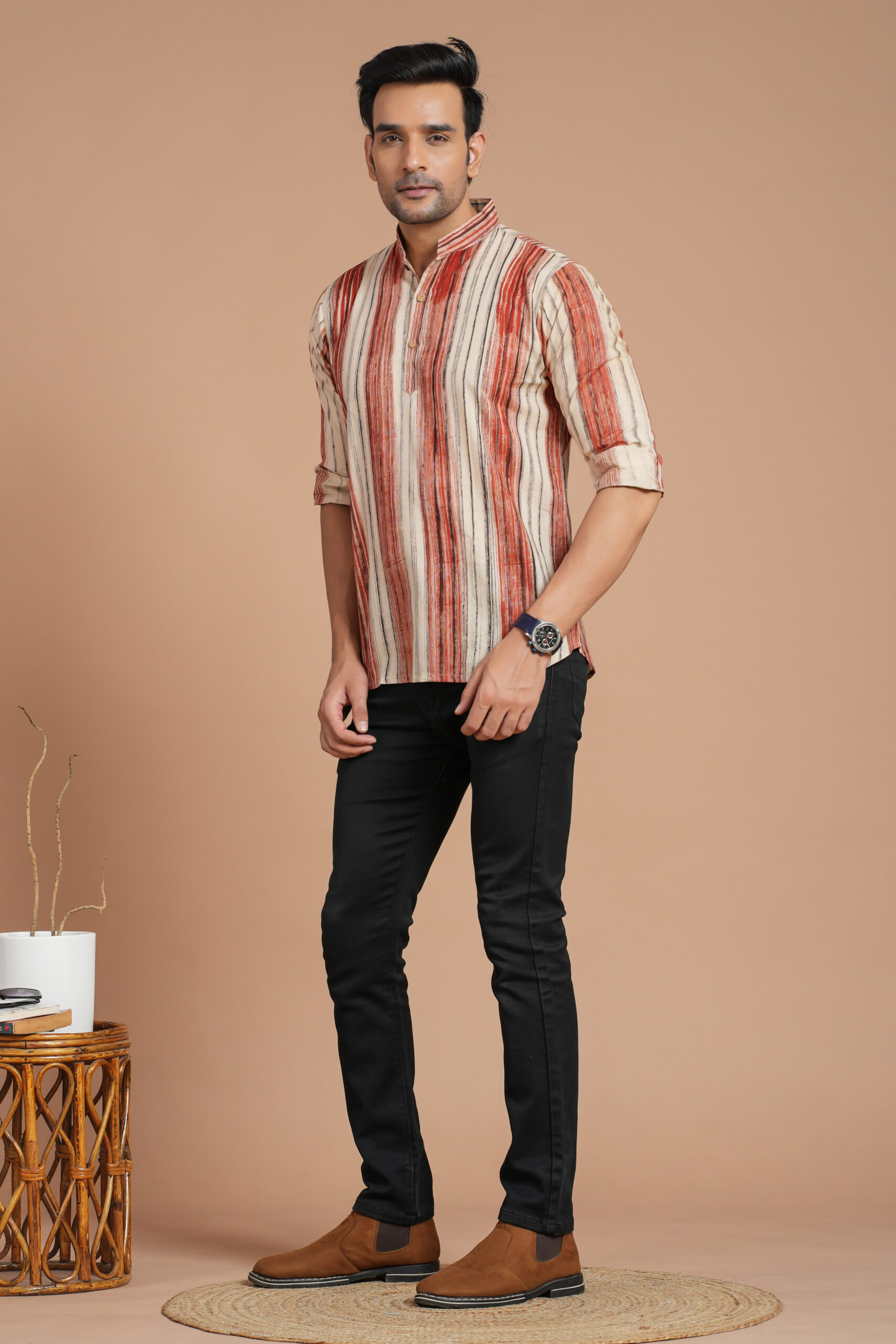 Be the first to review “Men’s Cotton Red & Beige Striped Casual Kurta – Daily & Festive Wear”