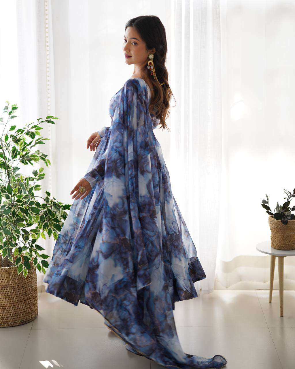 Add a touch of glamour to your festive wardrobe with this stunning 3 Piece Anarkali Set crafted from luxurious Crunchy Silk fabric with sparkling SiroSki work. Designed in a fully flared kali pattern with a canvas patta for added volume, this outfit beautifully blends elegance and comfort. The graceful dupatta with fancy lace border detailing enhances its charm, while the ready-to-wear pant ensures complete ease of styling. Perfect for weddings, festive celebrations, and special occasions, this ensemble is a timeless choice for every woman who loves to shine.